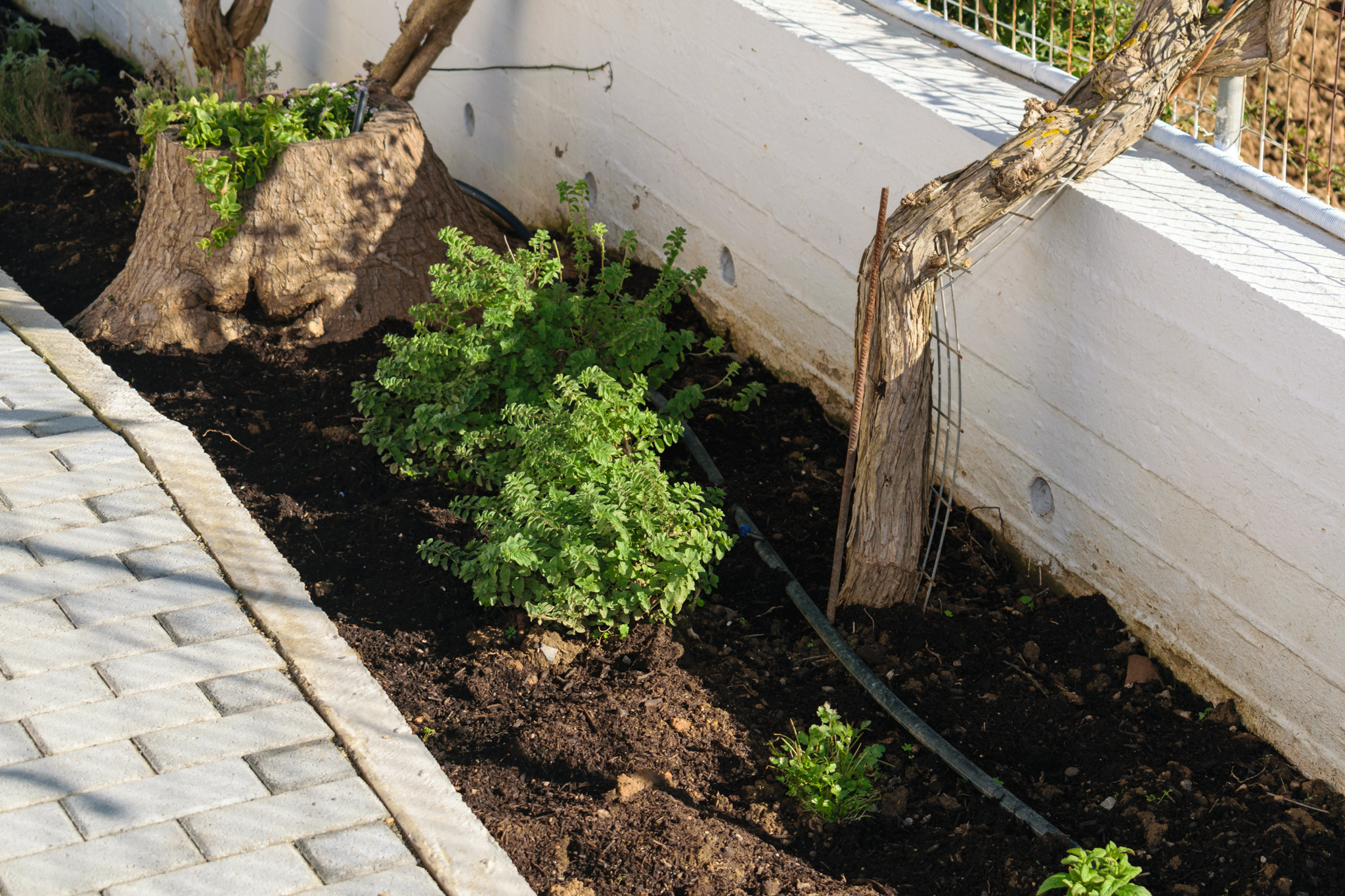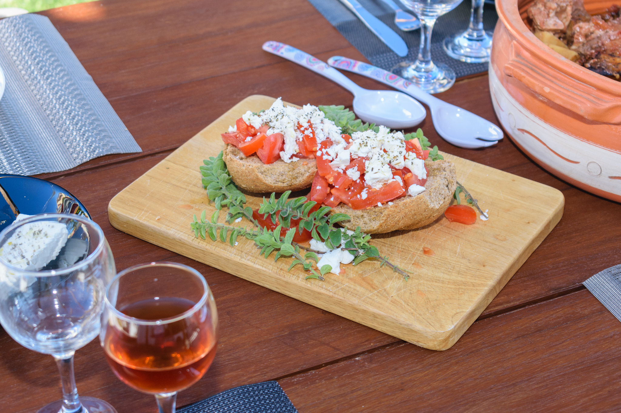 The house is surrounded by citrus trees, green grass, and a Cretan herb garden. You can make traditional Mediterranean dishes with the herbs and citruses.