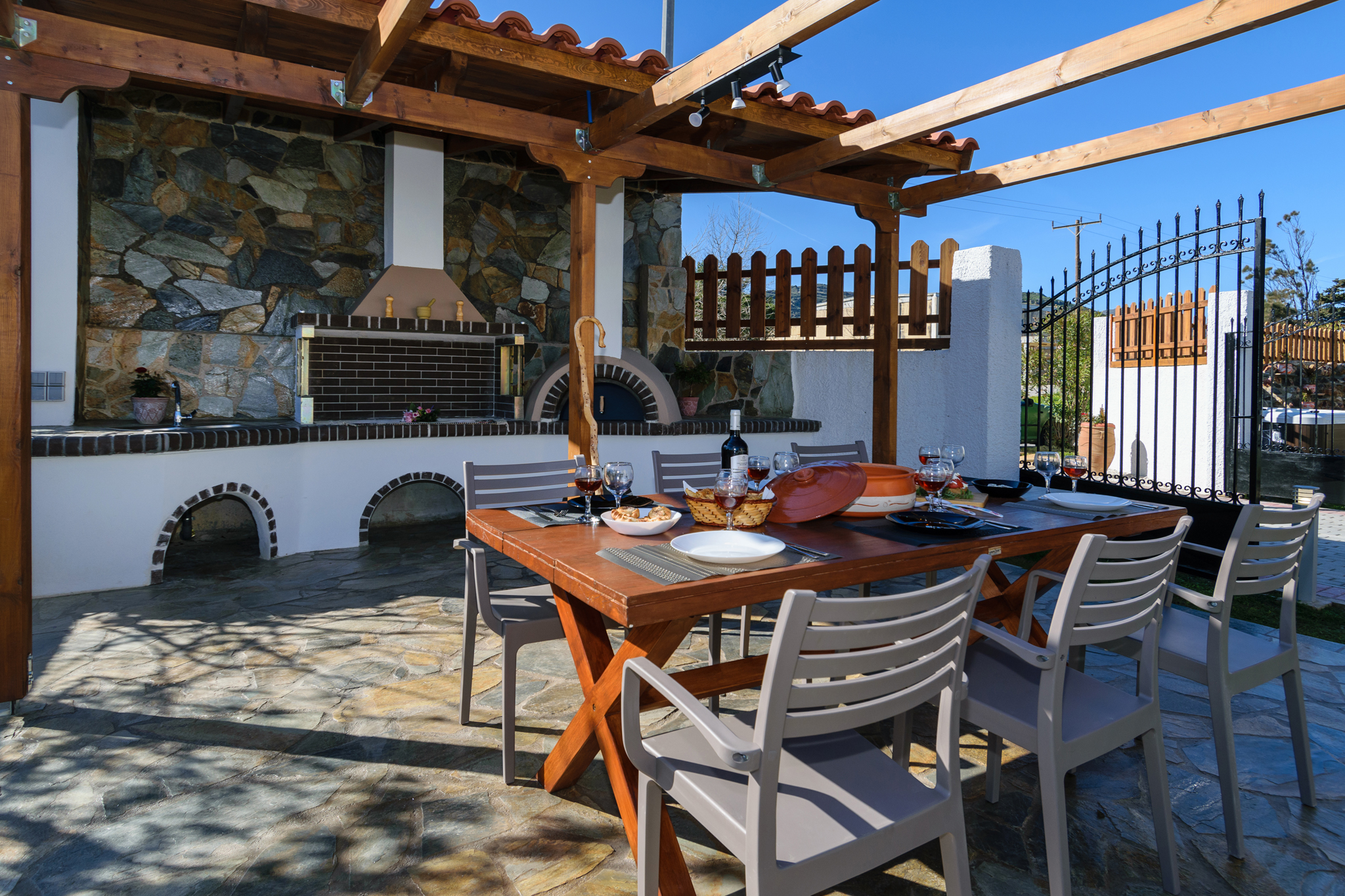 Try out a fully functional traditional stone BBQ and a wooden pizza oven, both of which are set on a local stone patio and surrounded by wooden pergolas. This area includes a long wooden table where you can enjoy delicious meals with family and friends.